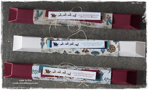 Die Verpackungen sind mit einer Banderole verschlossen  - die Zuckerstange und der Spruch stammen aus einem alten SU Set.